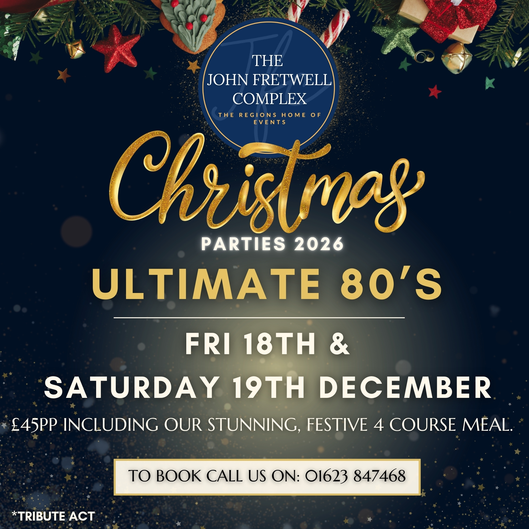 Each weekend features an incredible Tribute Act and our fantastic in-house DJ, and including our deliciously festive 4 course meal for just £45pp, there's no finer way to celebrate with friends, family or colleagues!